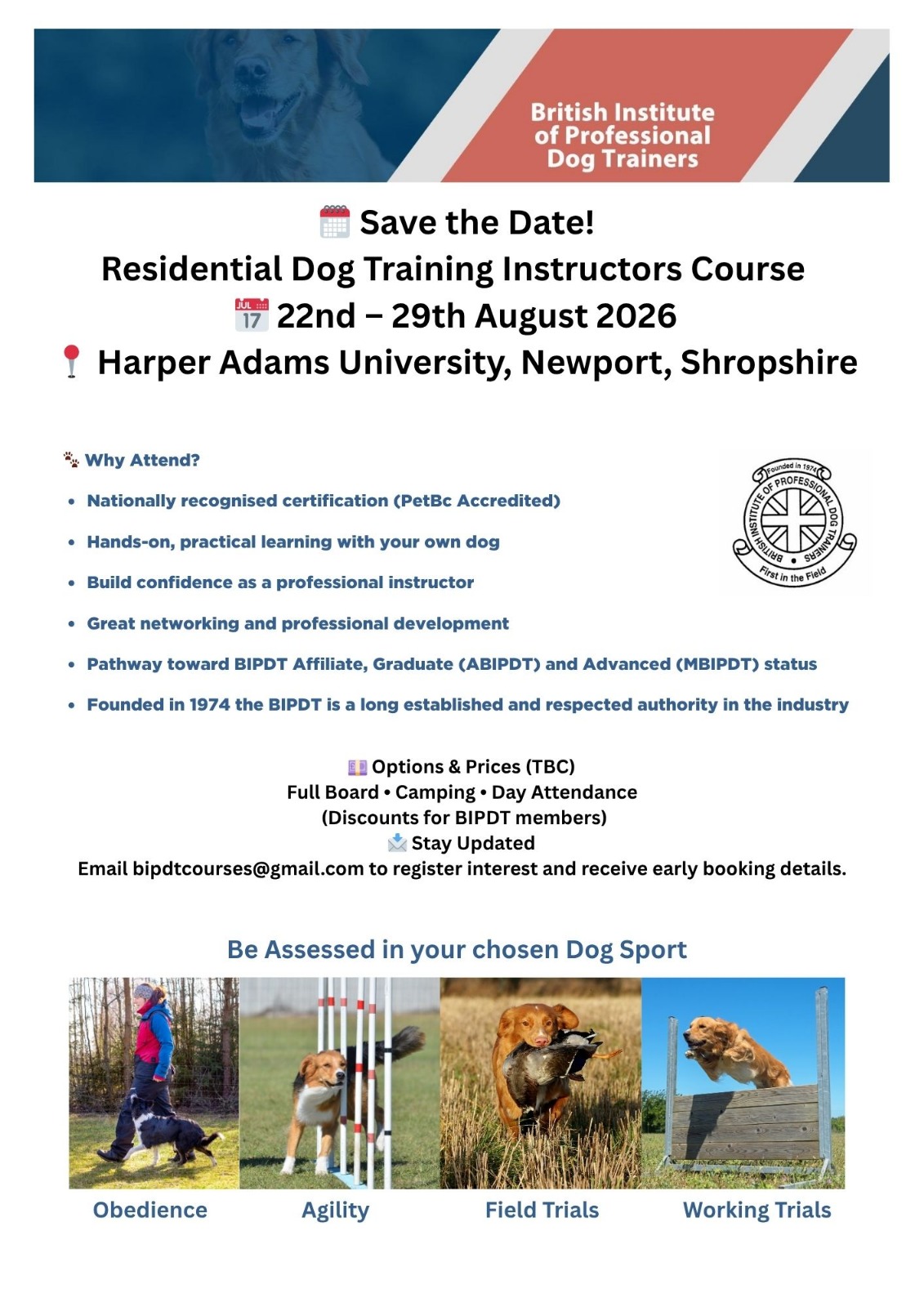 The British Institute of Professional Dog Trainers or BIPDT are a teaching organisation offering practical training courses to those wishing to become dog training instructors and who want to gain a qualification which is recognised throughout the canine world